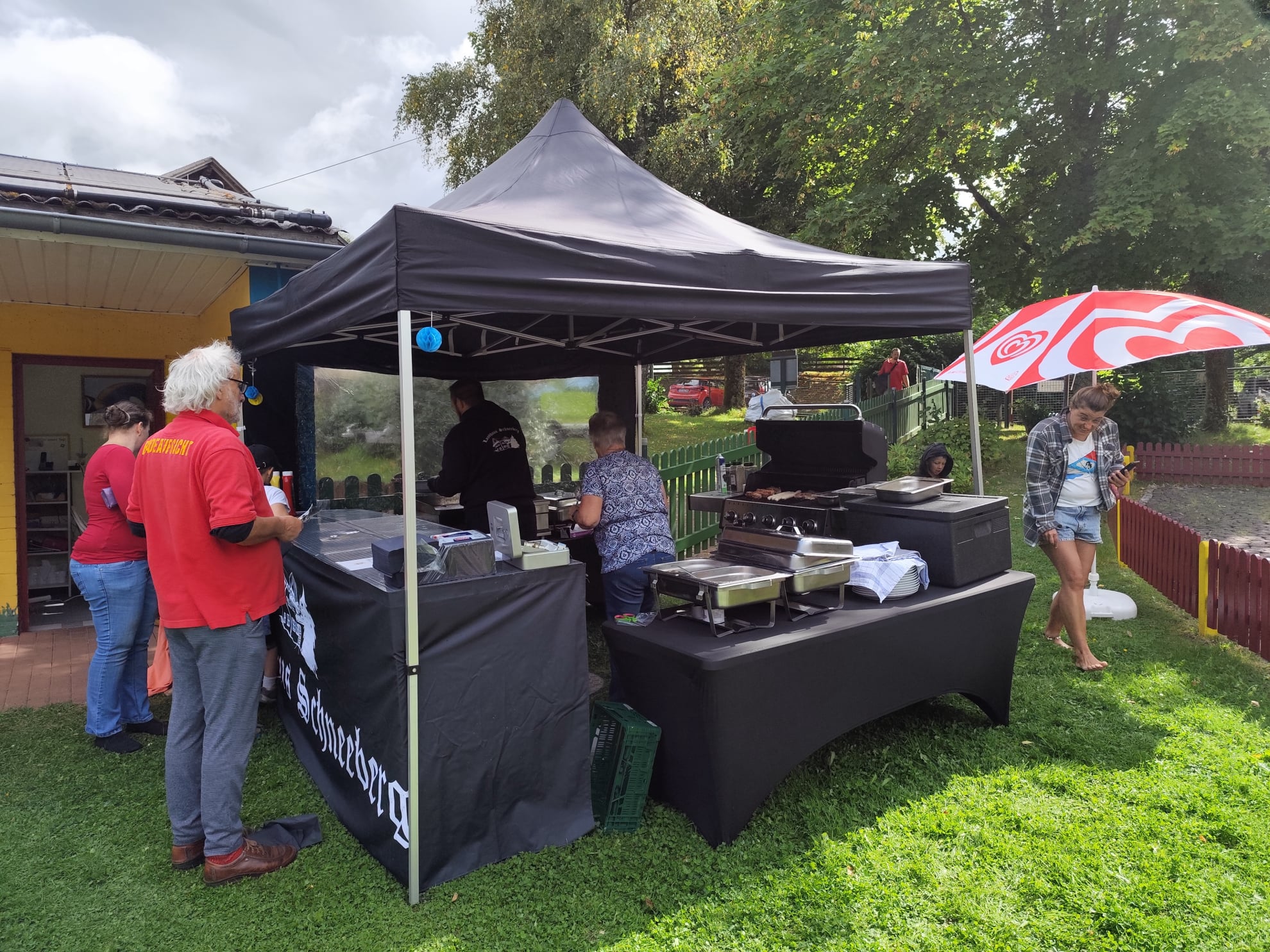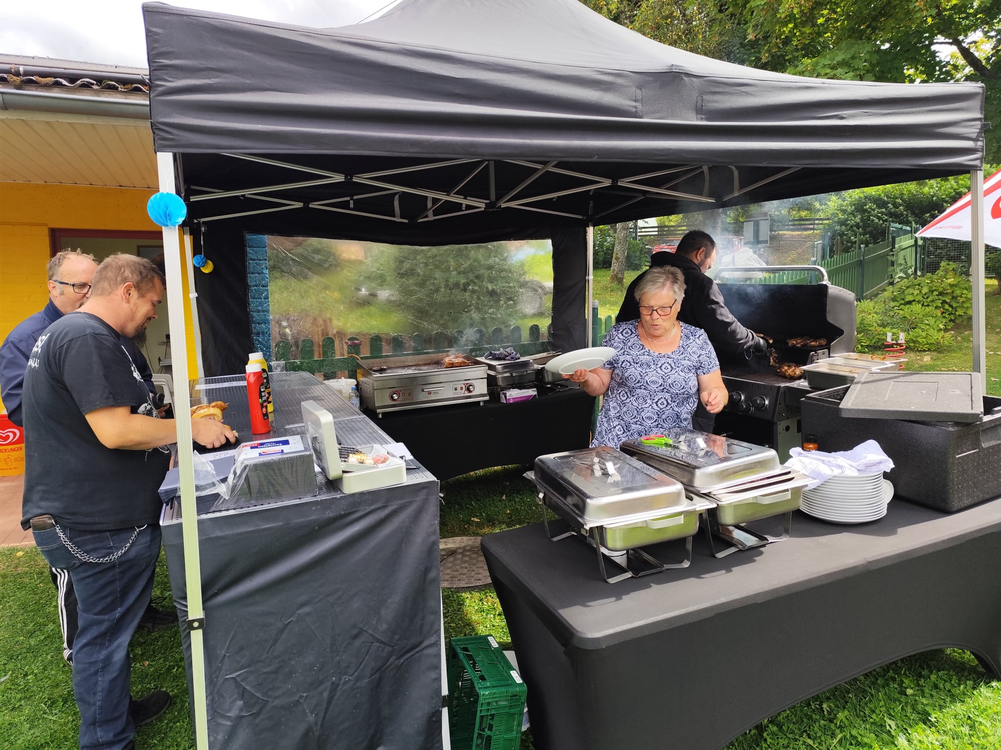 Für das leibliche Wohl war bestens gesorgt: Der Grill glühte und verwöhnte uns mit köstlichen Steaks, Fleischspießen und Würstchen. Dazu gab es leckere Grillkartoffeln, frisches Grillgemüse und knackige Salate. Wer es lieber süß mochte, konnte sich an den vielen, selbstgebackenen Kuchen sattessen.